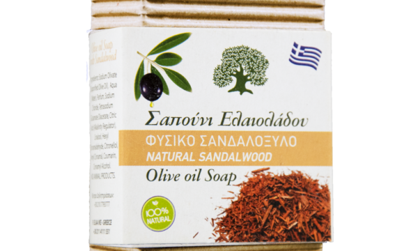 Σαπούνι από λάδι ελιάς, 100% φυσικό προϊόν, περιέχει ελαιόλαδο πλούσιο σε βιταμίνες Ε και Α, διαθέτει μαλακτικές και ενυδατικές ιδιότητες. Το ελαιόλαδο αναζωογονεί τέλεια το δέρμα και το καταπραΰνει. Το άρωμα του σανδαλόξυλου, χαρίζει την αίσθηση ευφορίας και καλής διάθεσης. Δεν επηρεάζει το pH του δέρματος.