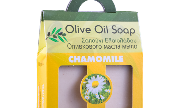 Σαπούνι από λάδι ελιάς, 100% φυσικό προϊόν, περιέχει ελαιόλαδο πλούσιο σε βιταμίνες Ε και Α, διαθέτει μαλακτικές και ενυδατικές ιδιότητες. Το ελαιόλαδο αναζωογονεί τέλεια το δέρμα και το καταπραΰνει. Με άρωμα Χαμομήλι, απαλό, αγνό και ευχάριστο, χαρίζει την αίσθηση ξεκούρασης και ηρεμίας. Δεν επηρεάζει το pH του δέρματος.