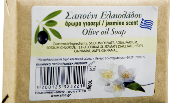 Σαπούνι από λάδι ελιάς, 100% φυσικό προϊόν, περιέχει ελαιόλαδο πλούσιο σε βιταμίνες Ε και Α, διαθέτει μαλακτικές και ενυδατικές ιδιότητες. Το ελαιόλαδο αναζωογονεί τέλεια το δέρμα και το καταπραΰνει. Με άρωμα γιασεμί, μεθυστικό και γλυκό που αναζωογονεί. Το γιασεμί συμβολίζει, εδώ και χιλιετίες την ελπίδα, την ευτυχία και την αγάπη. Δεν επηρεάζει το pH του δέρματος.