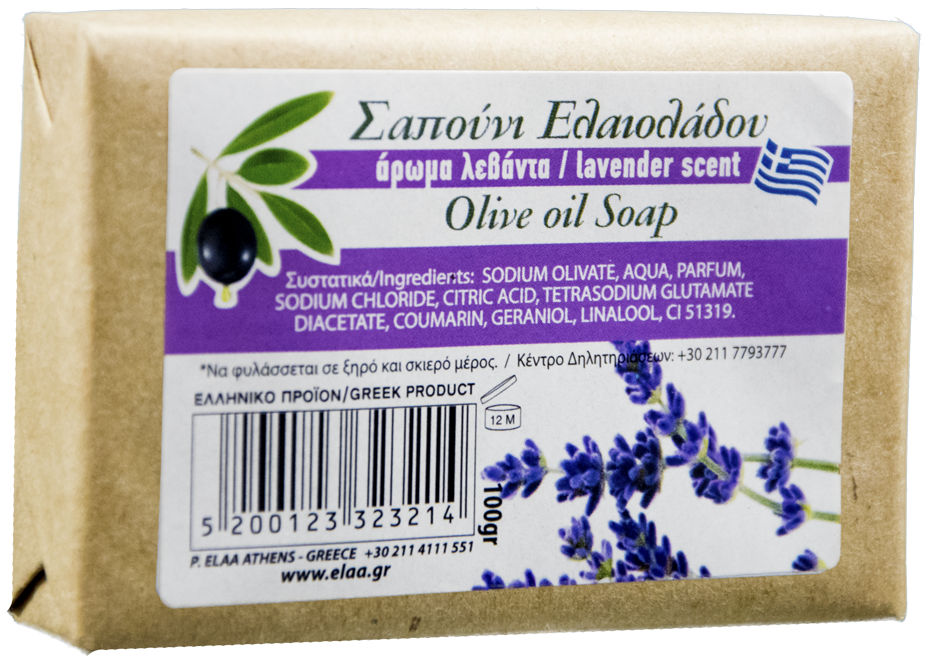 Σαπούνι από λάδι ελιάς, 100% φυσικό προϊόν, περιέχει ελαιόλαδο πλούσιο σε βιταμίνες Ε και Α, διαθέτει μαλακτικές και ενυδατικές ιδιότητες. Το ελαιόλαδο αναζωογονεί τέλεια το δέρμα και το καταπραΰνει. Με πλούσιο άρωμα λεβάντας, γνωστό και ως άρωμα της χαλάρωσης, χαρίζει την αίσθηση της ξεκούρασης και της ηρεμίας. Δεν επηρεάζει το pH του δέρματος.