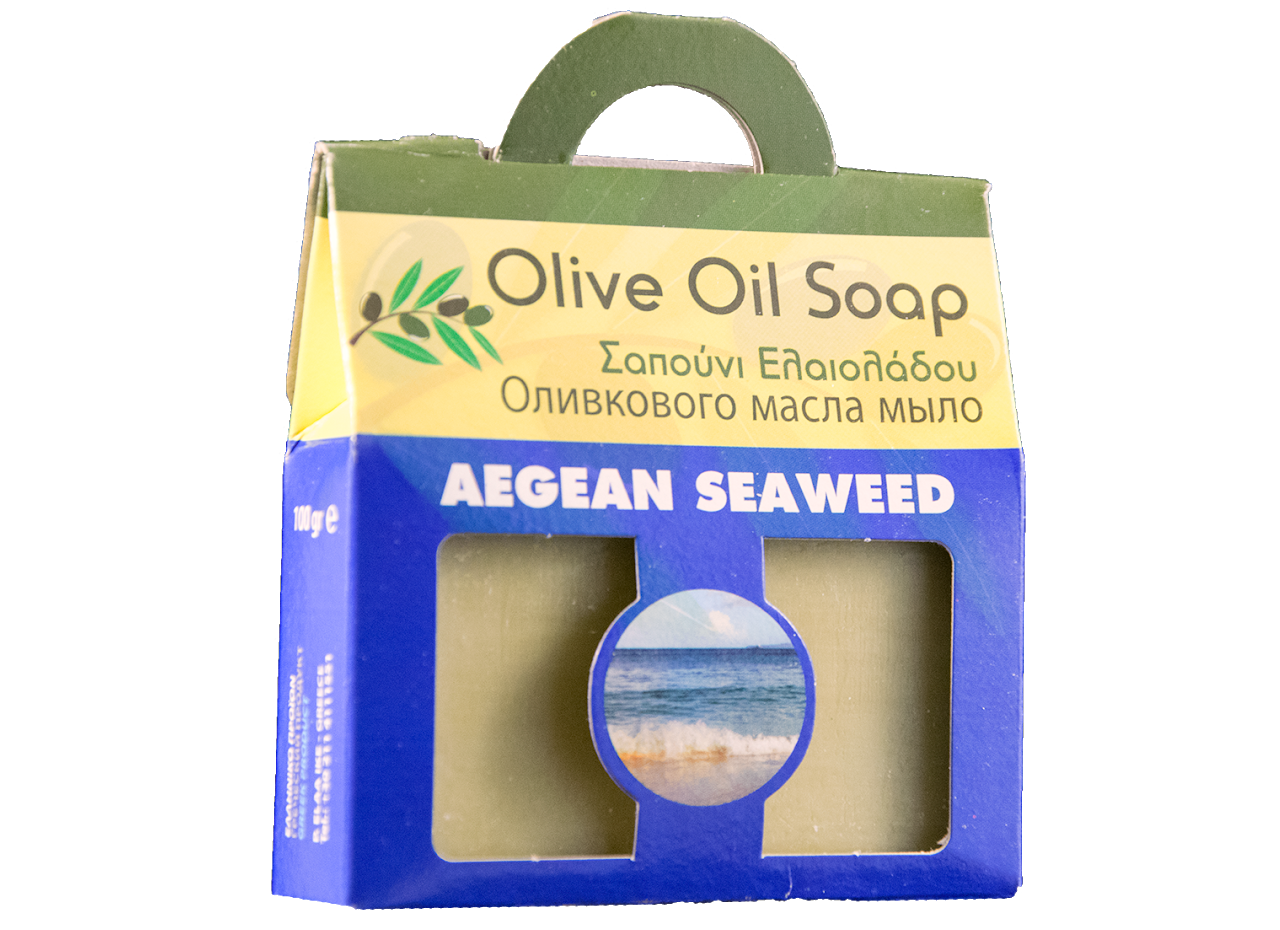 Σαπούνι από λάδι ελιάς, 100% φυσικό προϊόν, περιέχει ελαιόλαδο πλούσιο σε βιταμίνες Ε και Α, διαθέτει μαλακτικές και ενυδατικές ιδιότητες. Το ελαιόλαδο αναζωογονεί τέλεια το δέρμα και το καταπραΰνει. Με φύκια Αιγαίου, χαρίζει την αίσθηση δροσιάς και φρεσκάδας. Δεν επηρεάζει το pH του δέρματος.